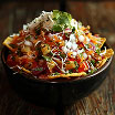 Succulent prawns tossed with fresh avocado, cherry tomatoes, and mixed greens, lightly dressed with citrus vinaigrette.